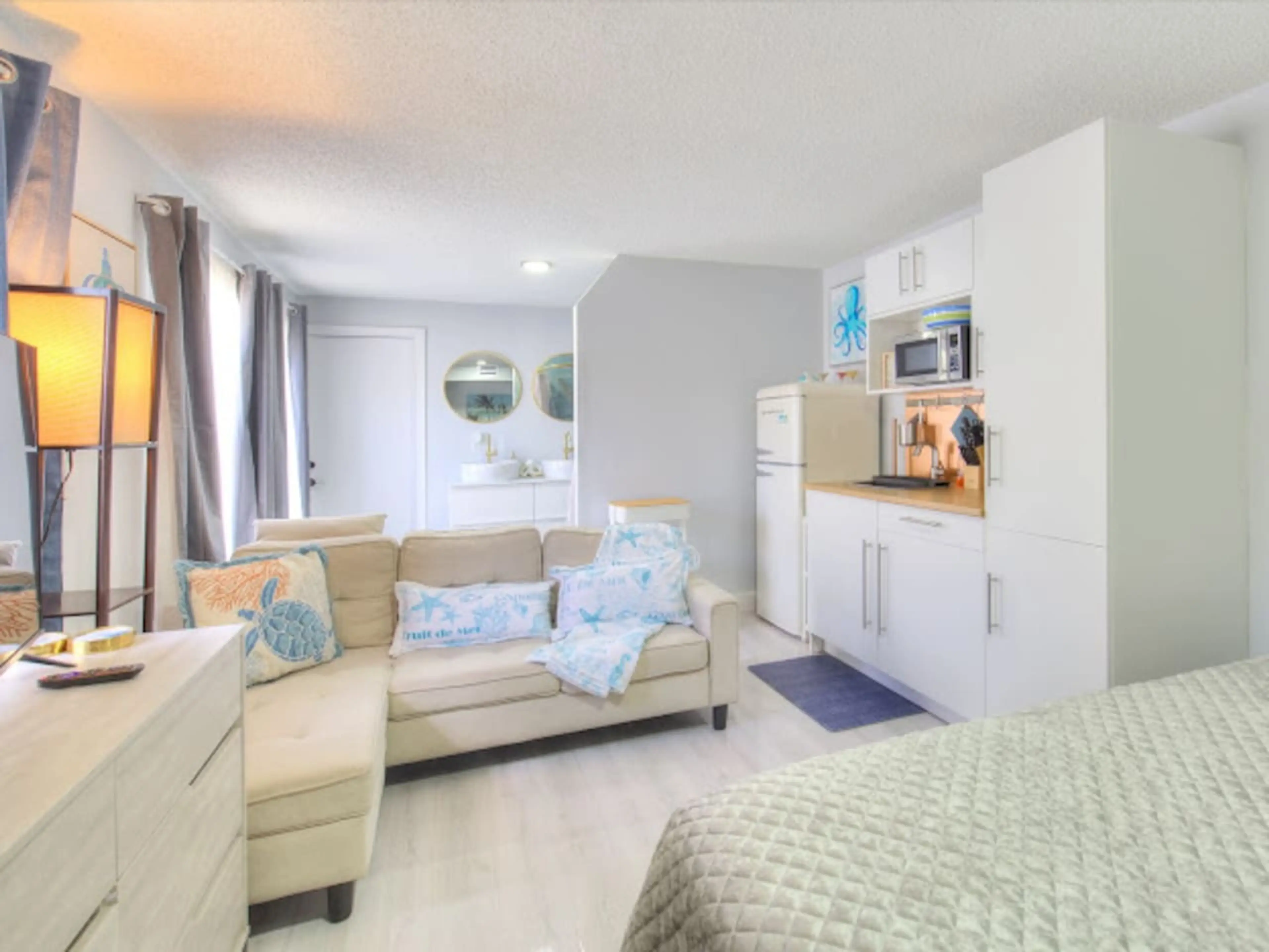 New construction with elegant taste. Enjoy a stylish experience at this centrally-located place. Studio apartment located a few minutes from the beach. Luxurious decor with an Italian marble shower to make you feel like you’re on a cloud after a day of sun and sand. Located in a quiet residential ne...